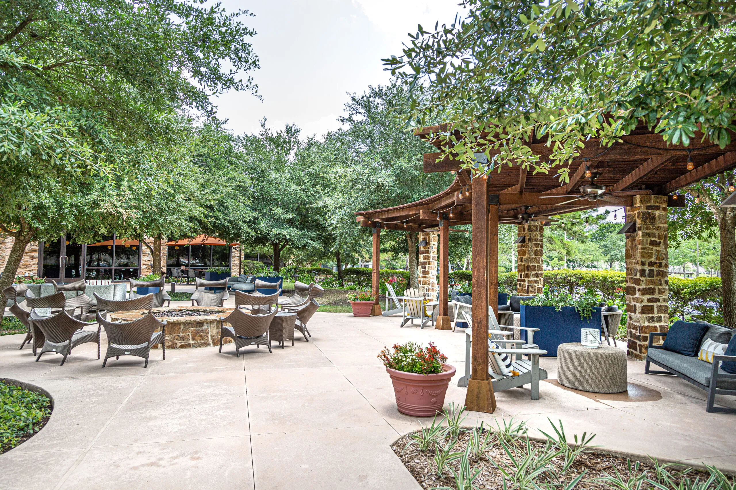 Overlooking the picturesque 18th green and pond located on the wooded oasis of The Woodlands® Resort, Back Table features an outdoor patio, the Back Porch, that can be enjoyed year-round for receptions and gatherings. The Back Porch features semi-private seating for 60 and includes a fire pit.